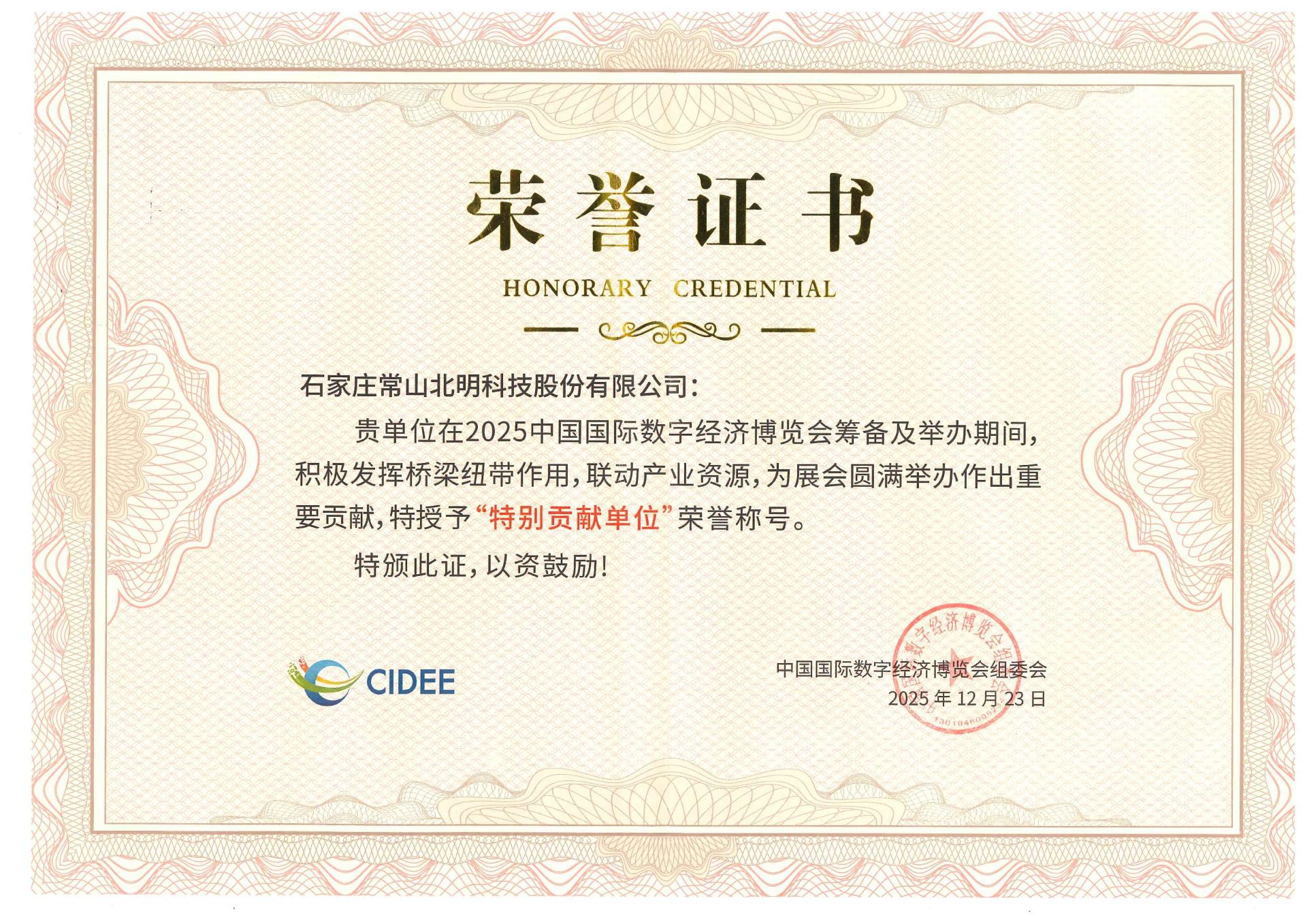 2025年中国国际数字博览会特别贡献单位